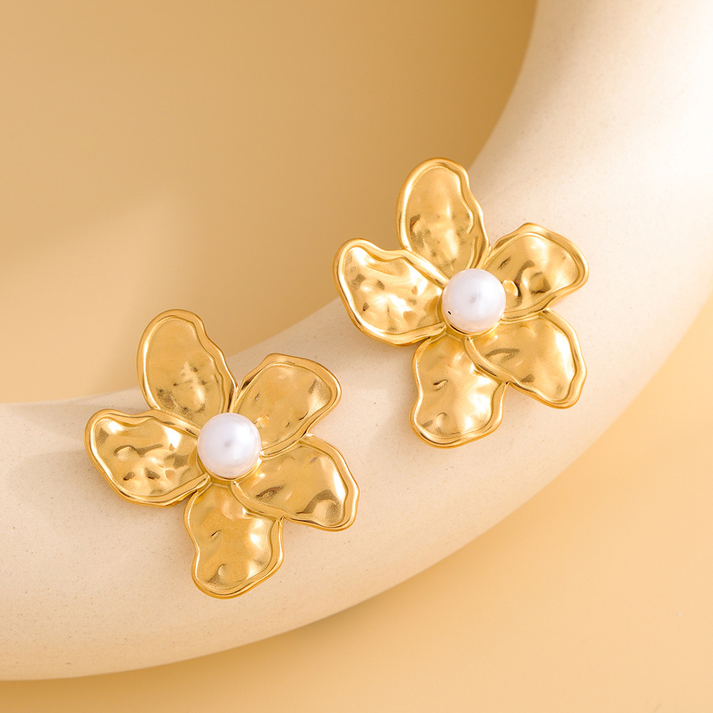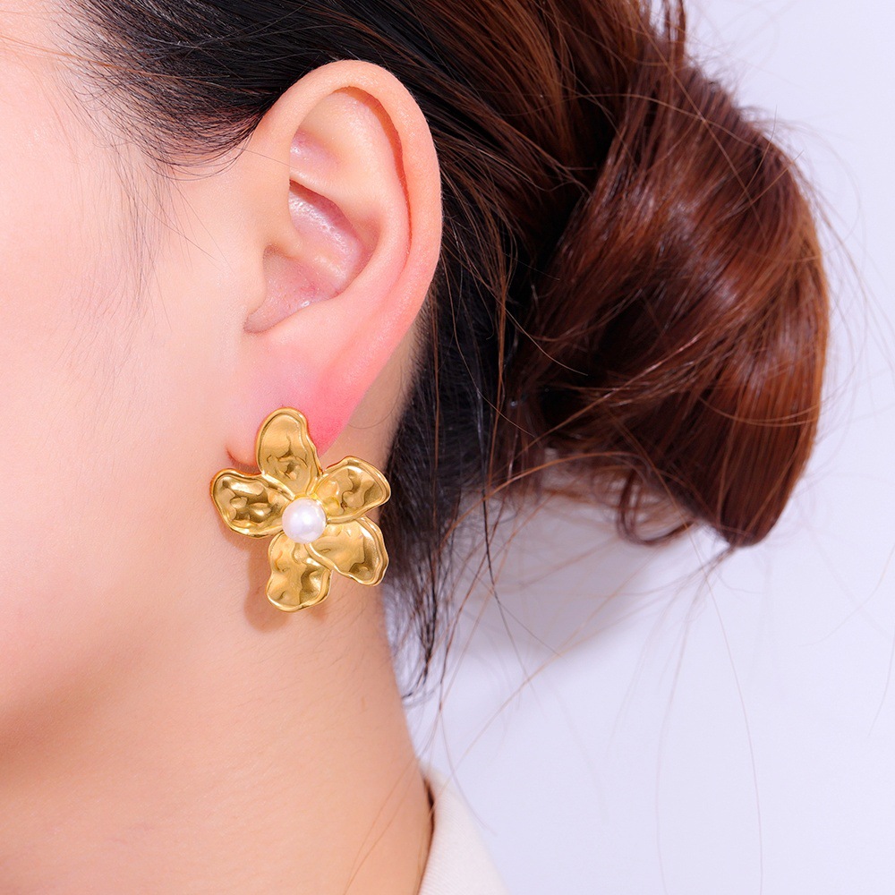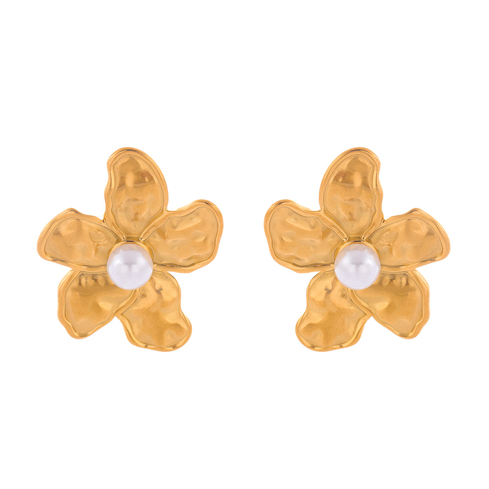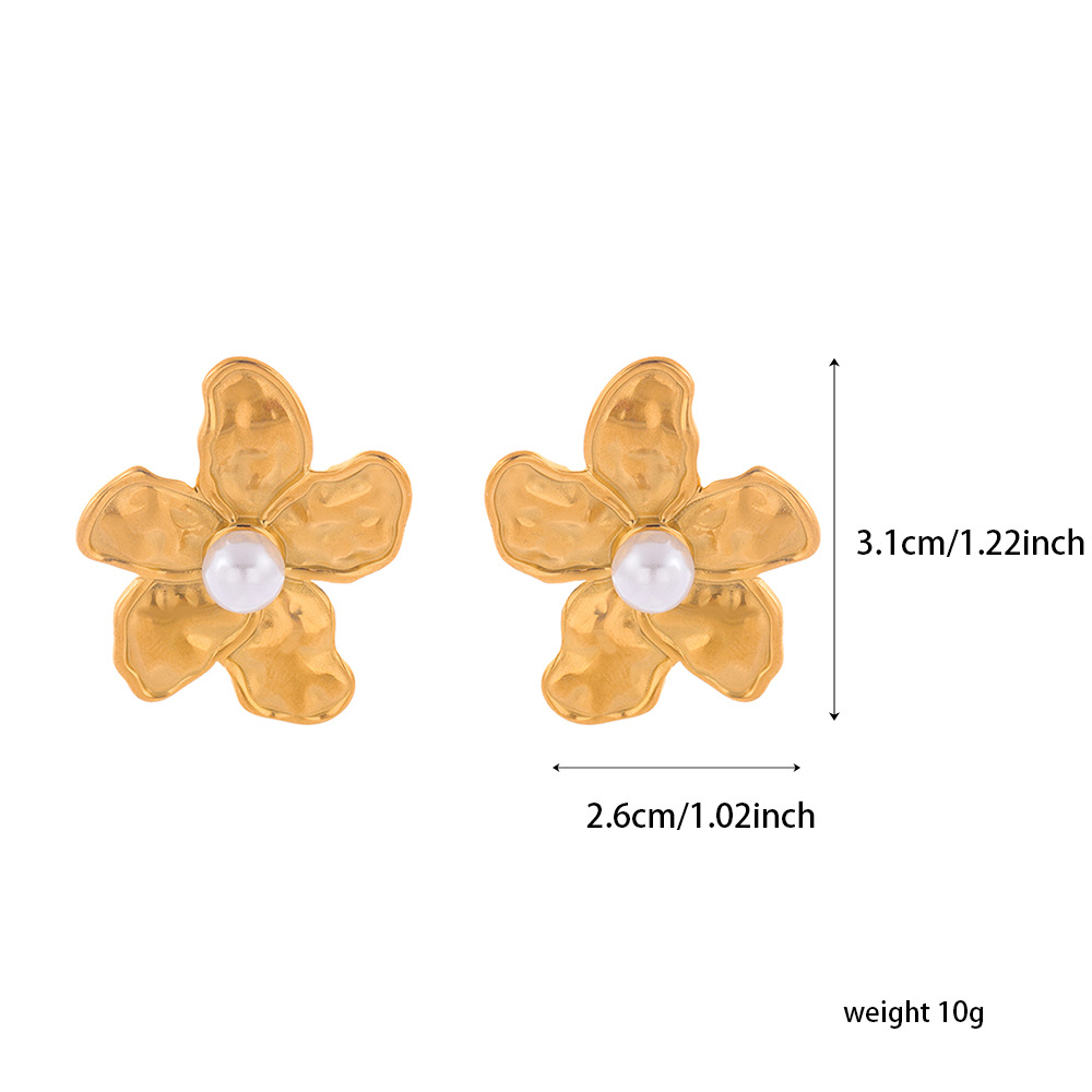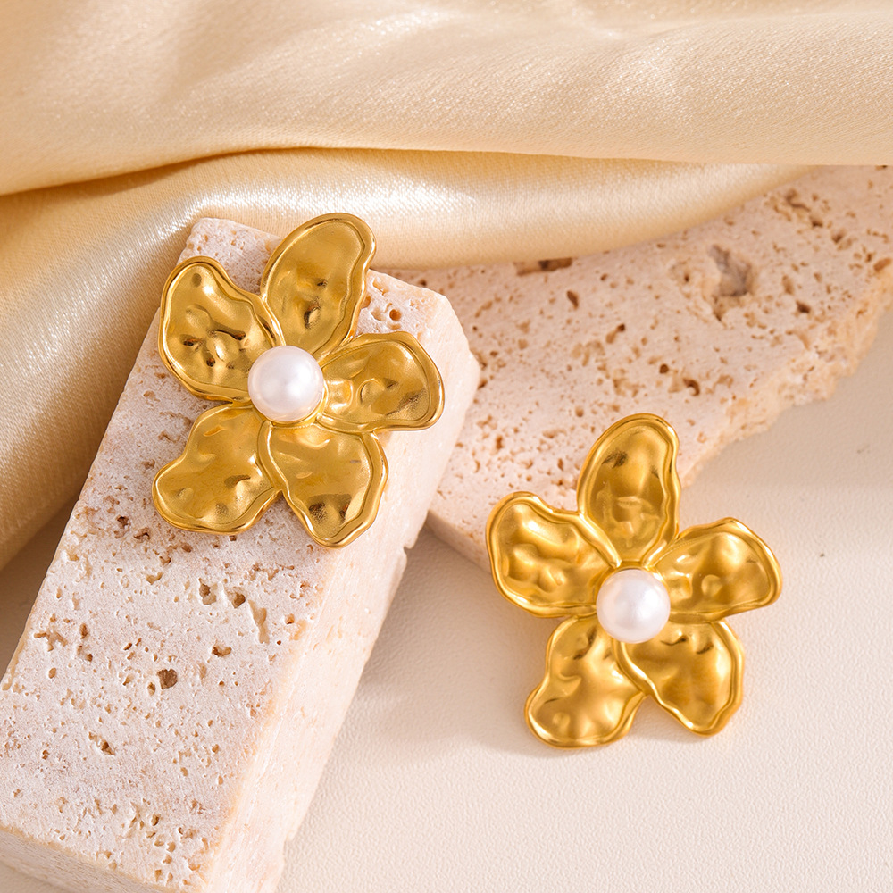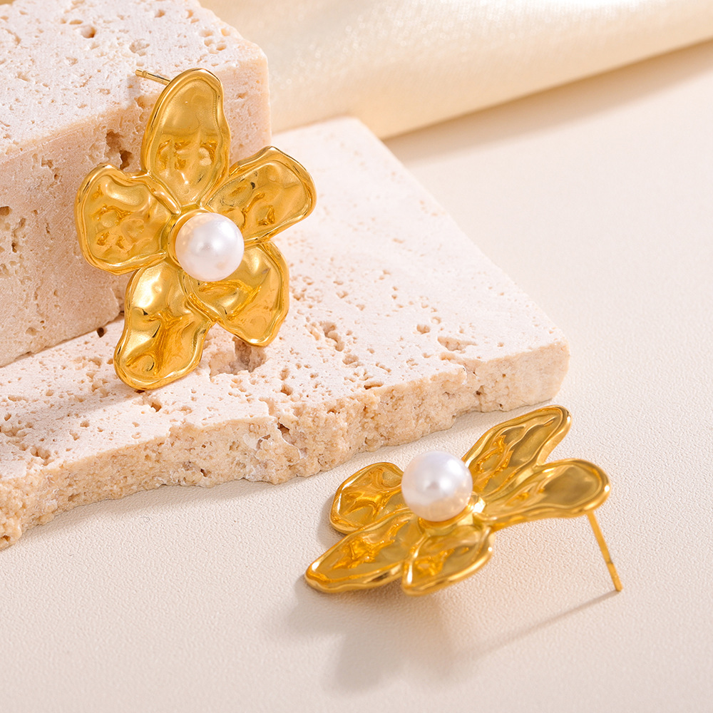 Серьги из нержавеющей стали, Нержавеющая сталь 304, с Пластиковая жемчужина, Форма цветка, Другое покрытие, ювелирные изделия моды & Женский, Золотой, продается Пара