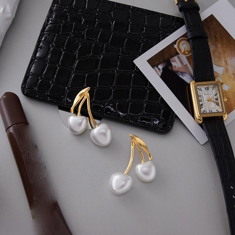 Серьги из нержавеющей стали, Нержавеющая сталь 304, с Пластиковая жемчужина, Ягода, Другое покрытие, ювелирные изделия моды & Женский, Золотой, продается Пара