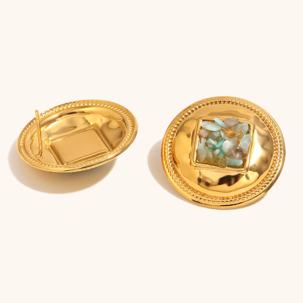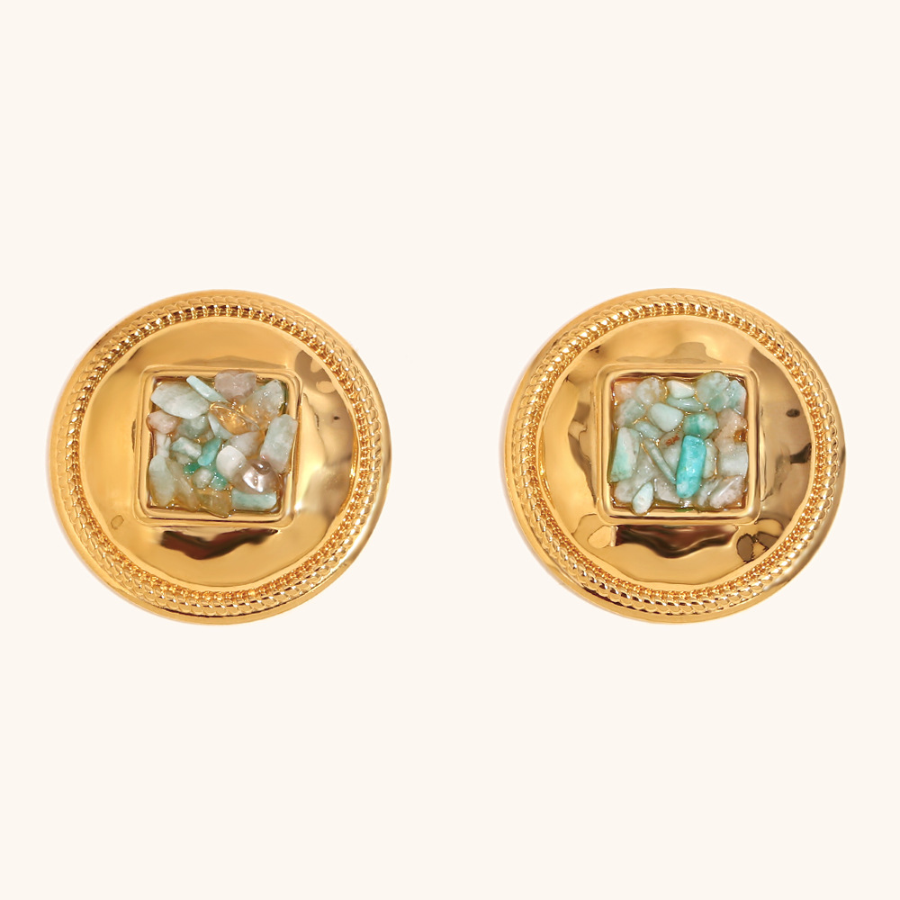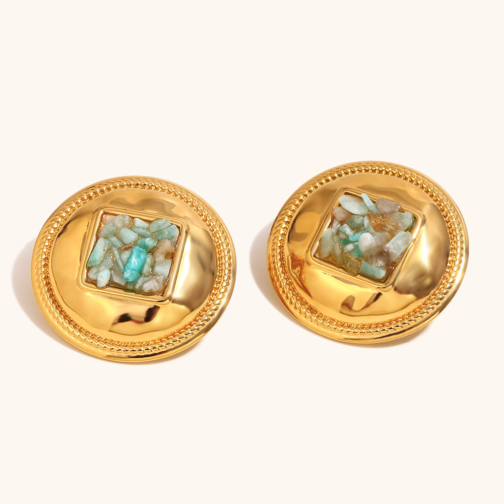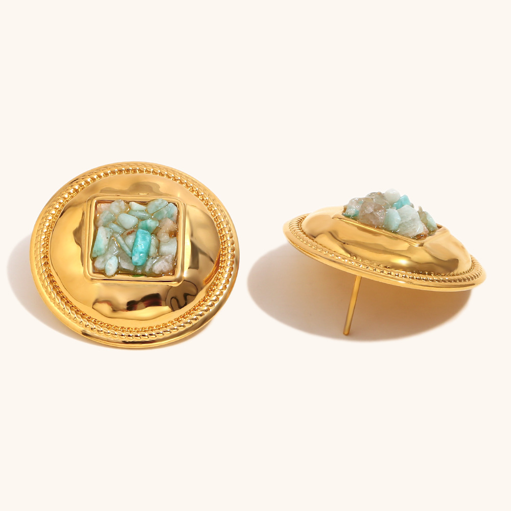 Серьги из нержавеющей стали, Нержавеющая сталь 304, с бирюза, Круглая, плакирован золотом, Женский, продается Пара