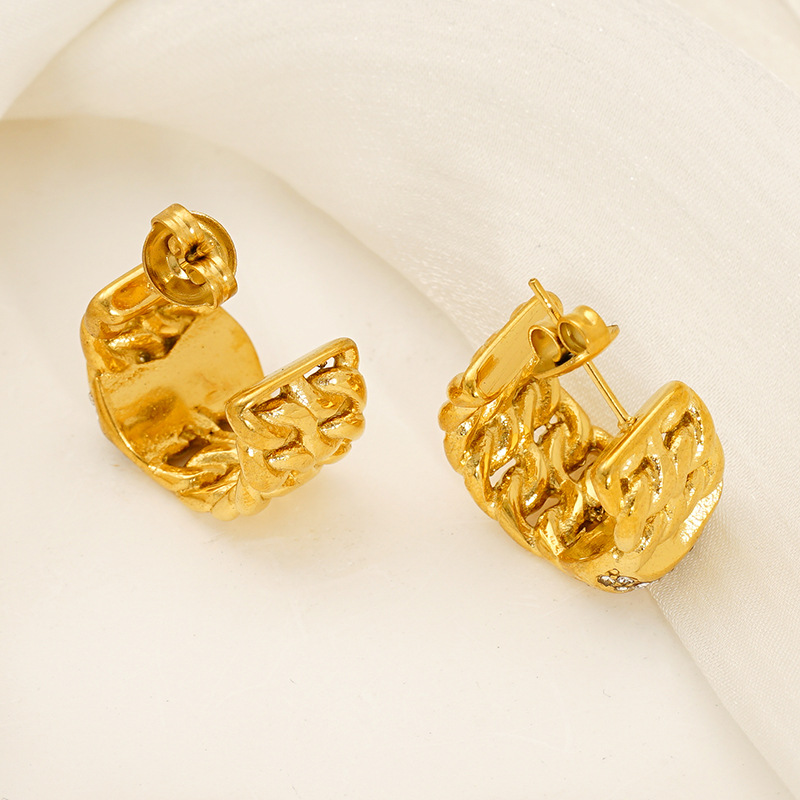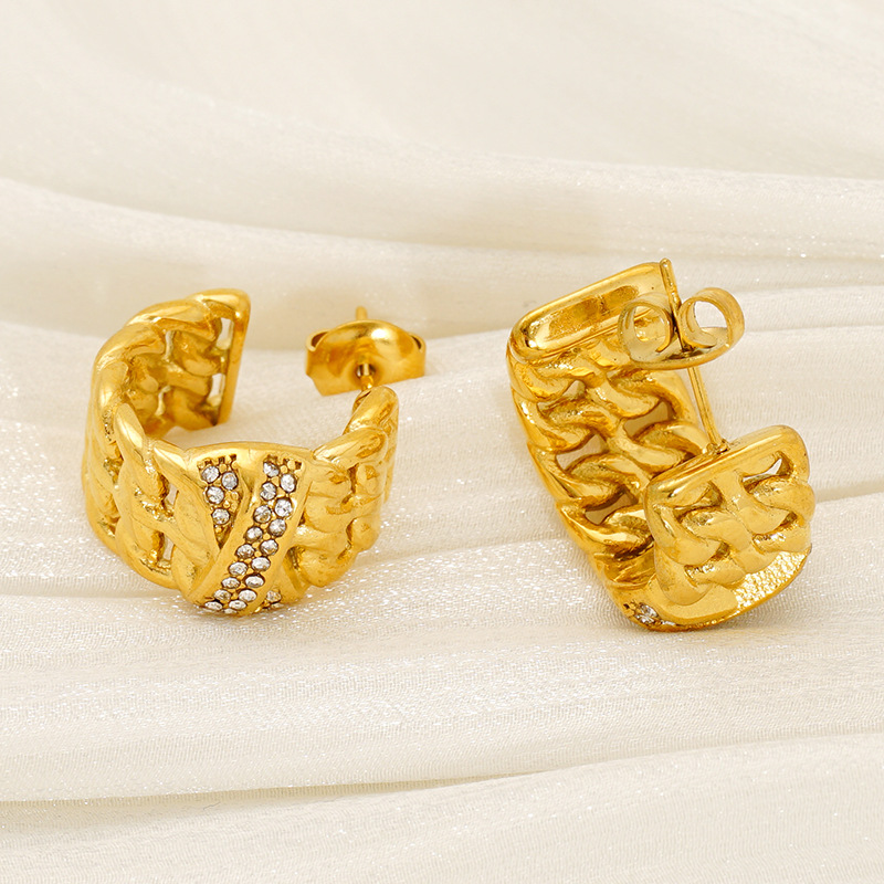 Серьги из нержавеющей стали, Нержавеющая сталь 304, 18K позолоченный, ювелирные изделия моды & Женский & со стразами, продается Пара