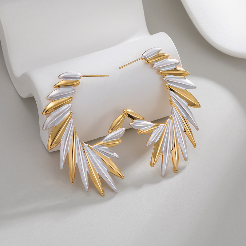 Серьги из нержавеющей стали, нержавеющая сталь, плакирован золотом, Женский & эмаль, белый, 37x54mm, продается Пара