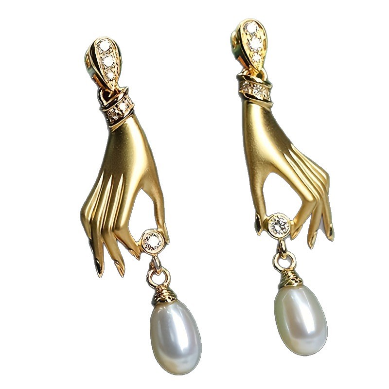 Серьги капельки цинкового сплава, цинковый сплав, с Пластиковая жемчужина, Рука, инкрустированное микро кубического циркония & Женский & отверстие, Золотой, продается Пара