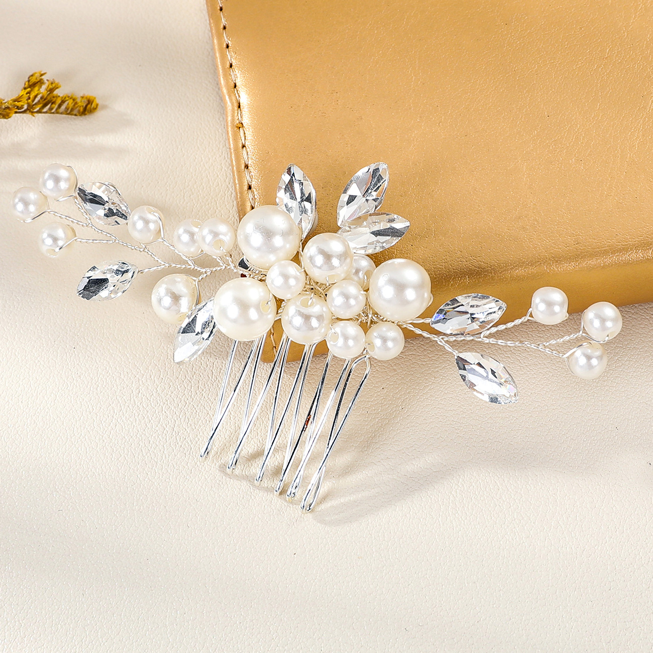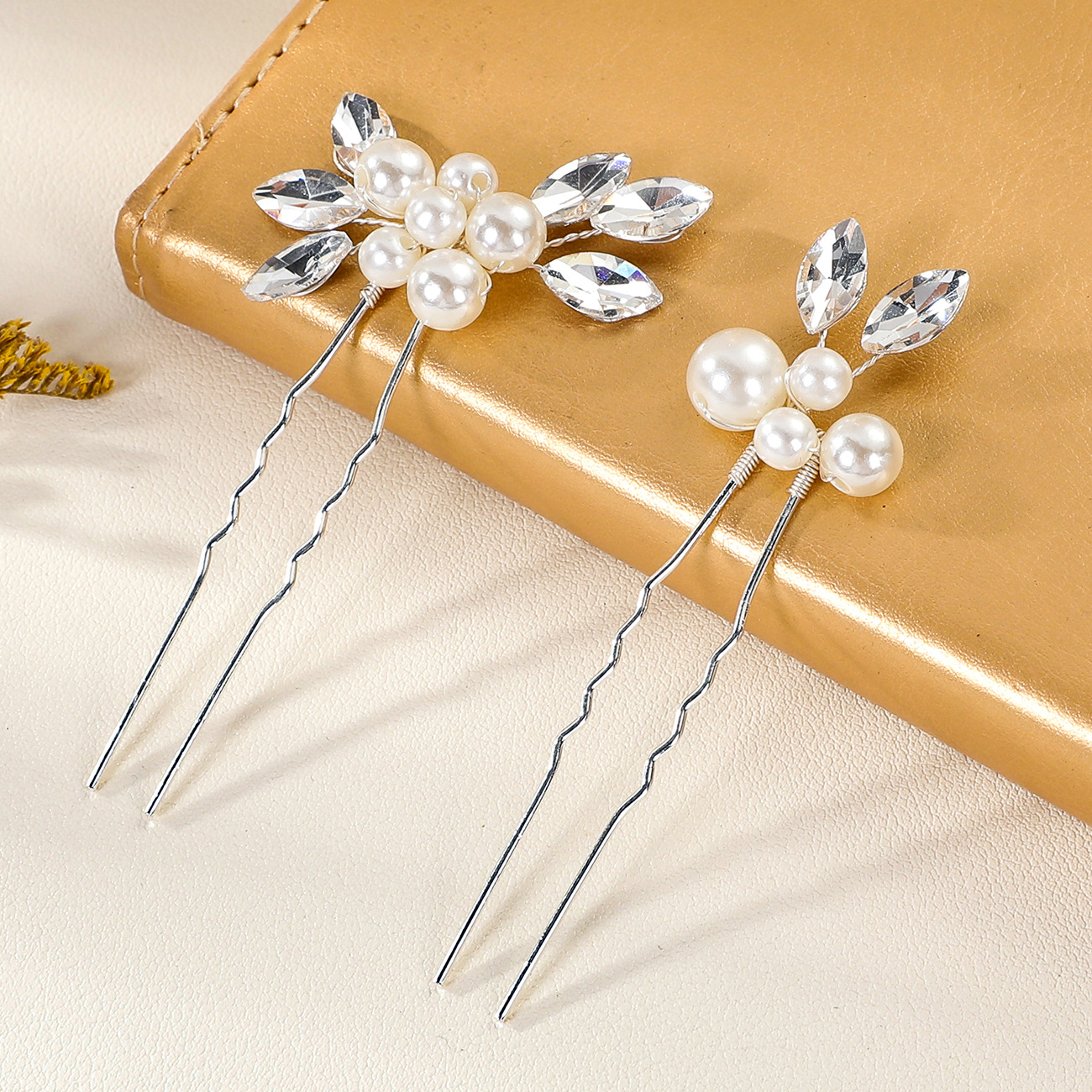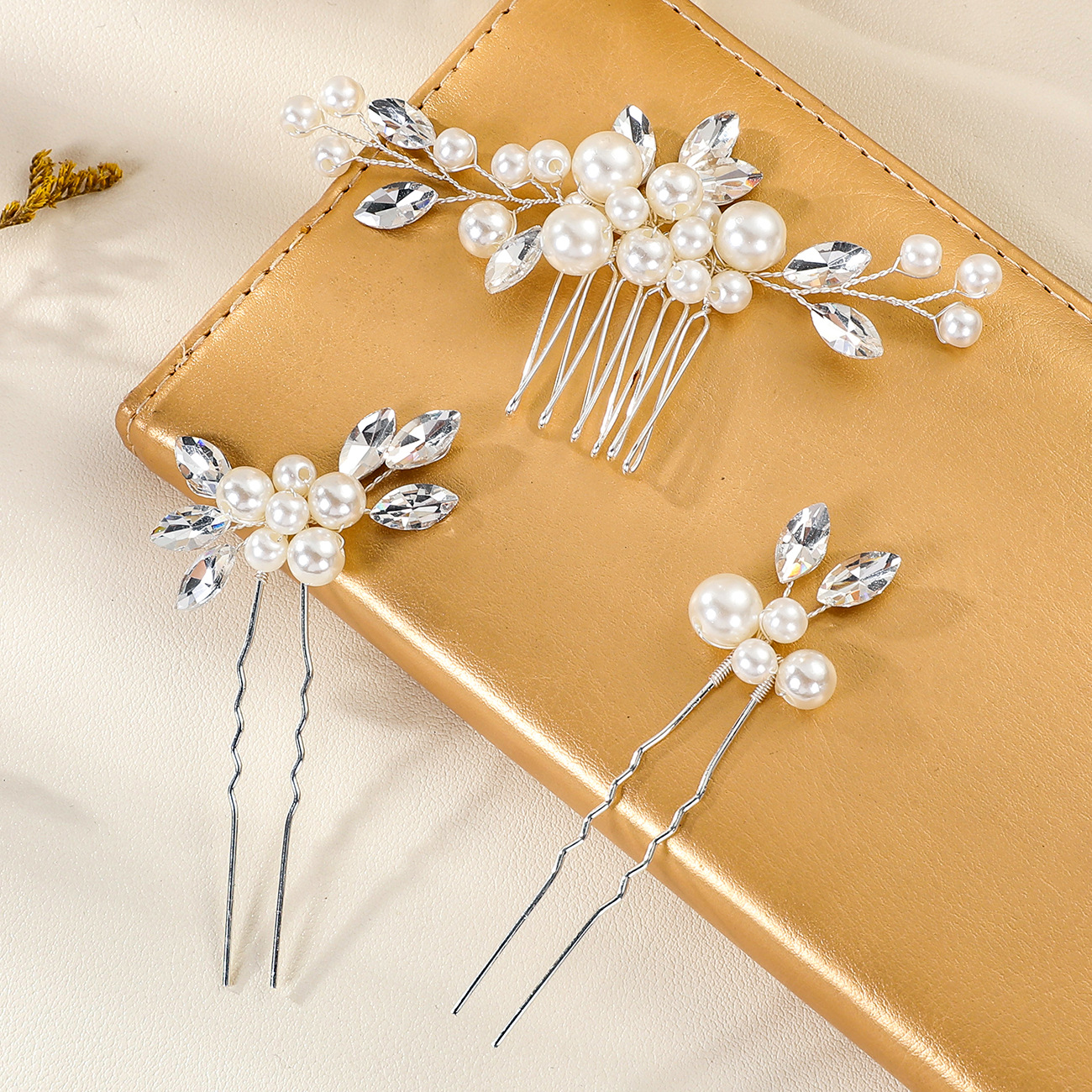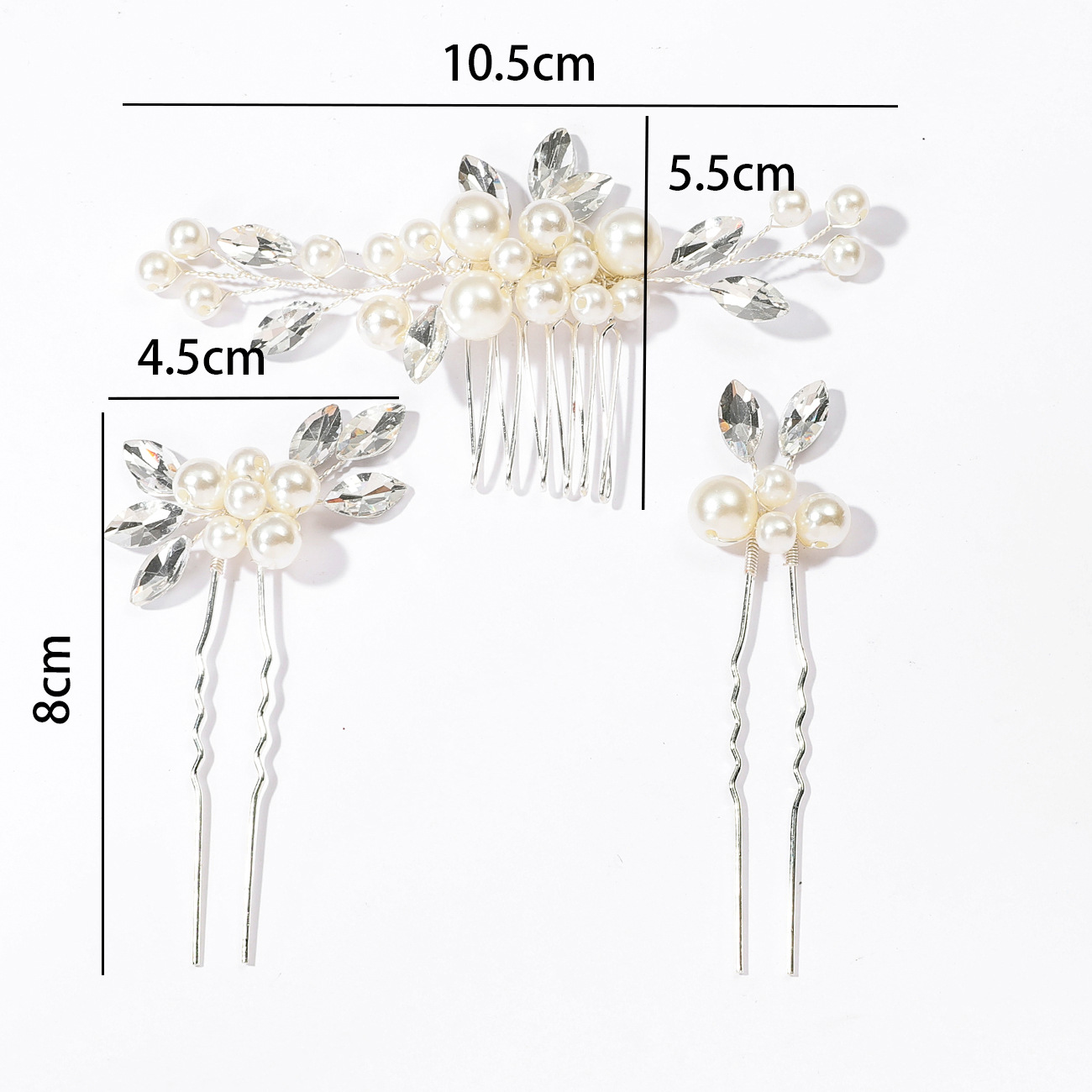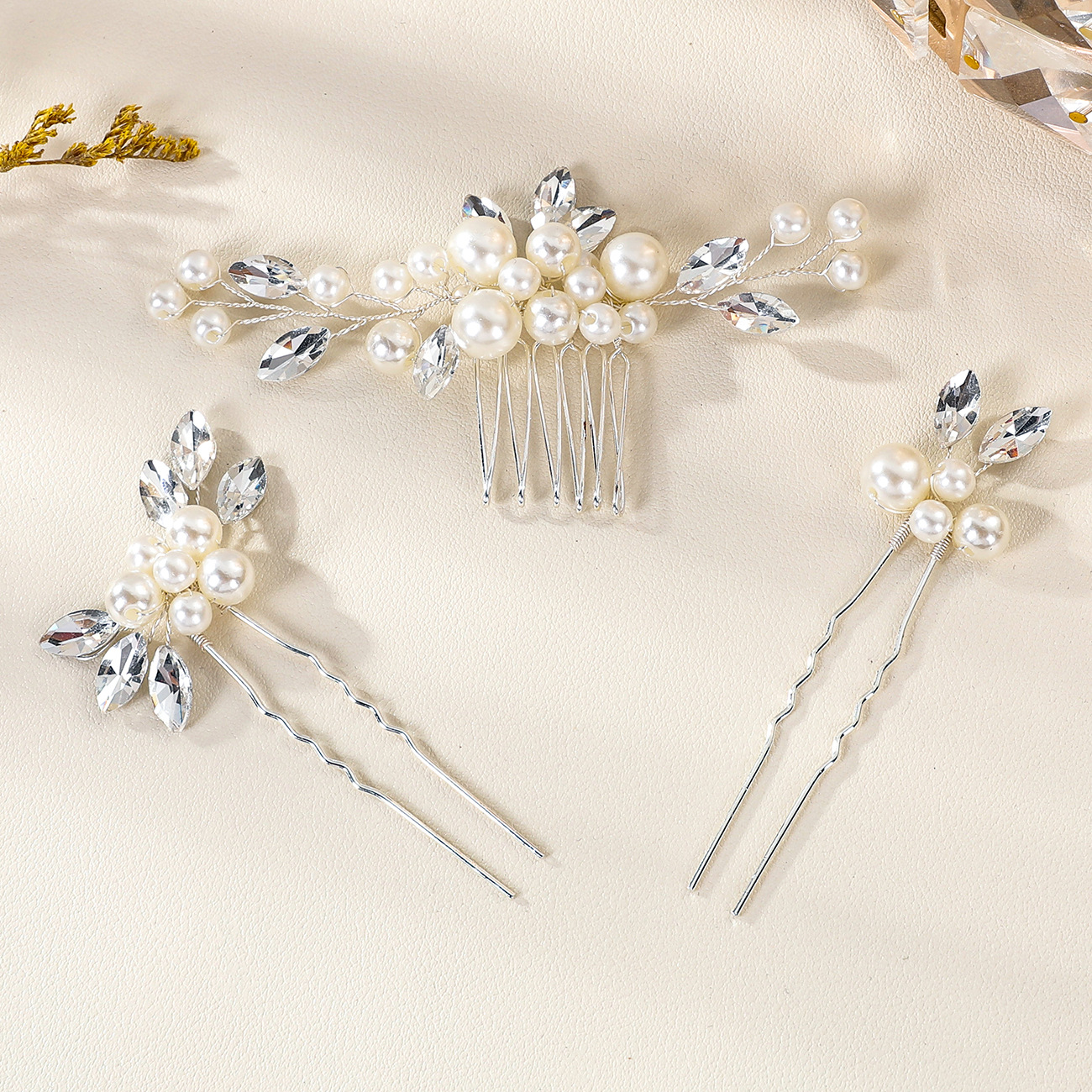 цинковый сплав Комплект украшений в волосы, с Медная проволока & Кристаллы & Пластиковая жемчужина, Связанный вручную, три части & ювелирные изделия моды & Женский, серебряный, продается указан
