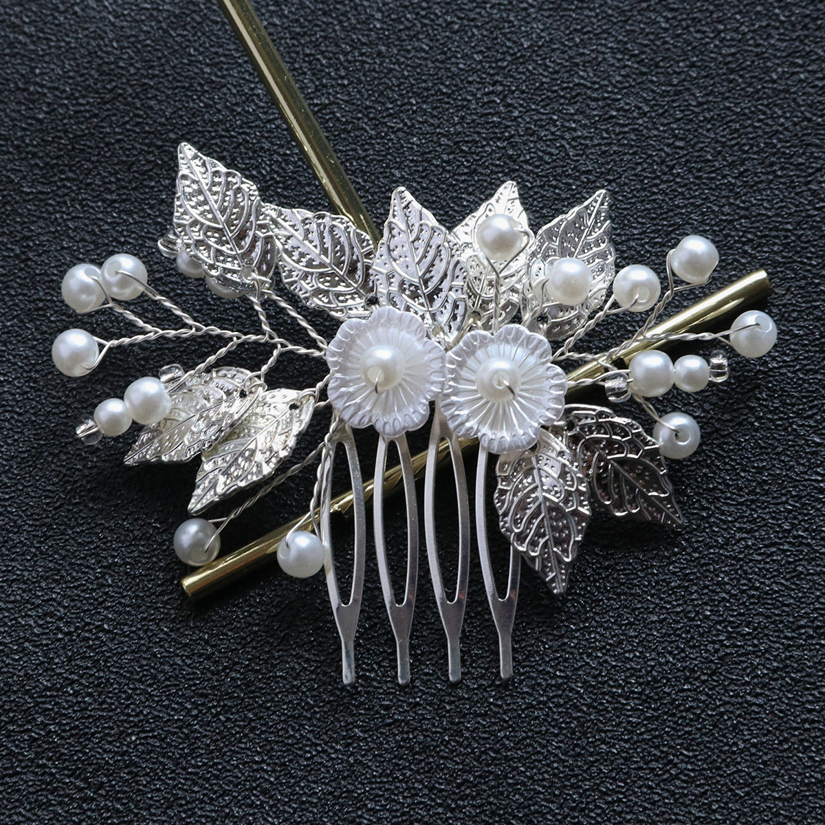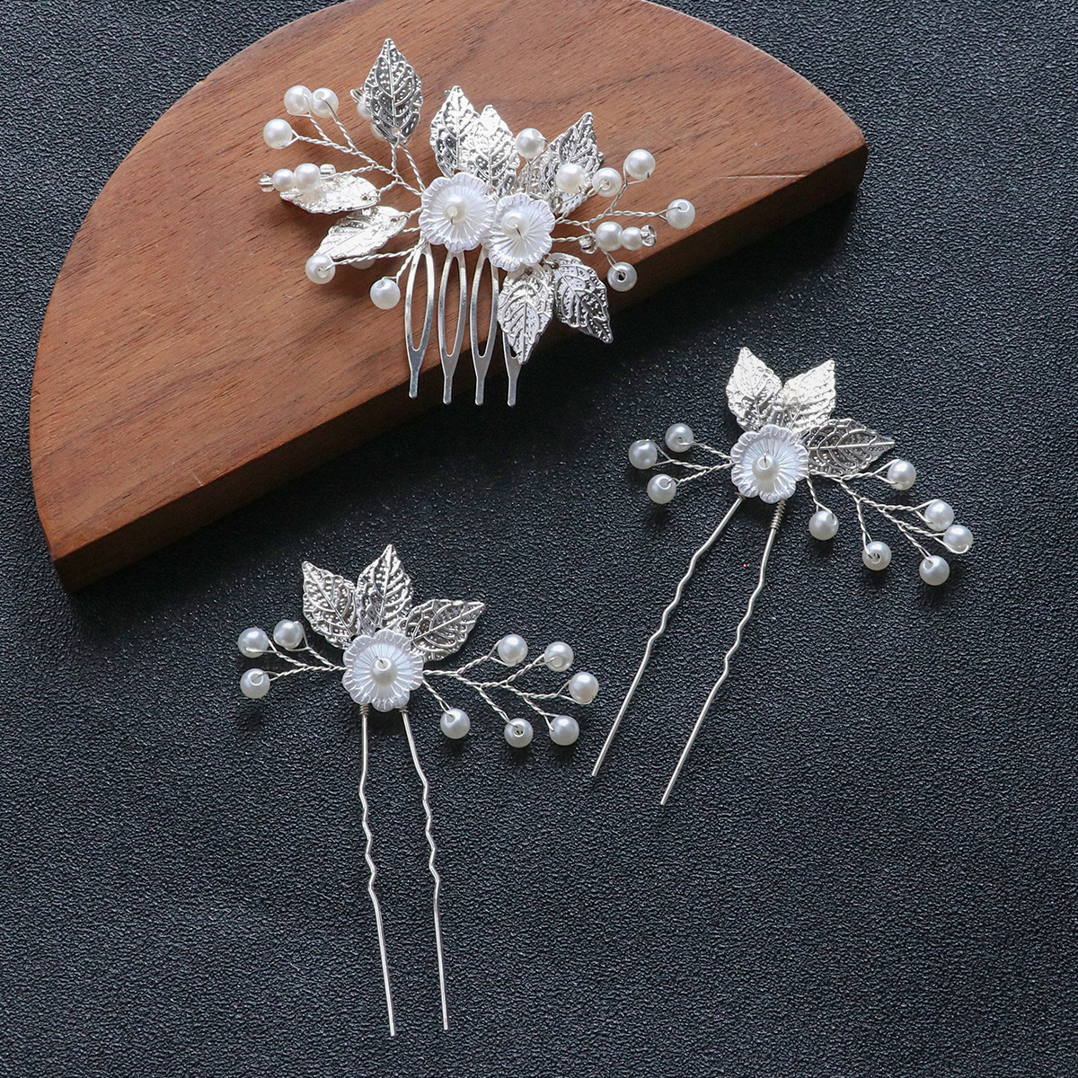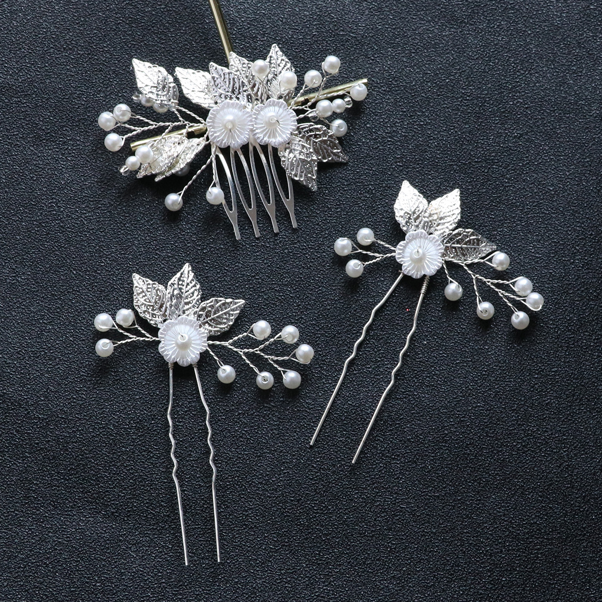 цинковый сплав Комплект украшений в волосы, с Медная проволока & Пластиковая жемчужина, Связанный вручную, три части & ювелирные изделия моды & Женский, серебряный, продается указан