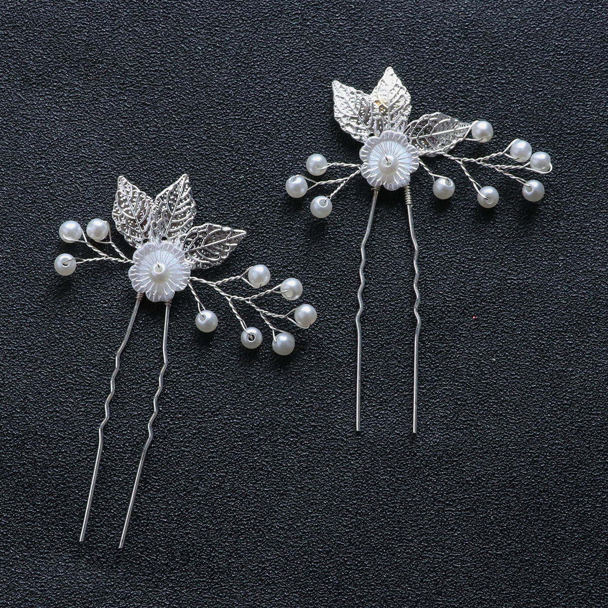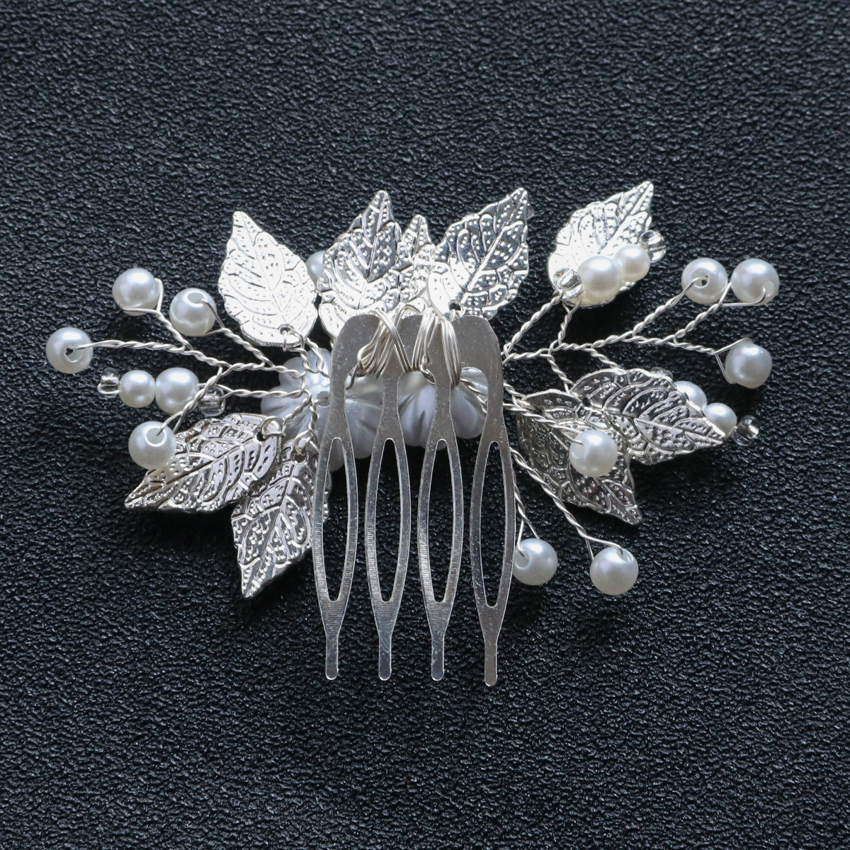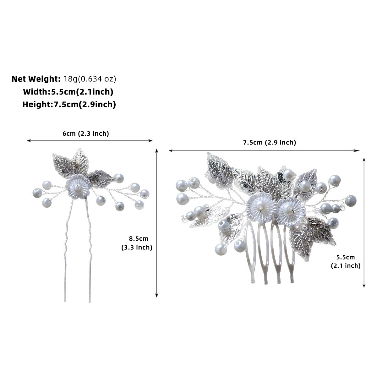 цинковый сплав Комплект украшений в волосы, с Медная проволока & Пластиковая жемчужина, Связанный вручную, три части & ювелирные изделия моды & Женский, серебряный, продается указан