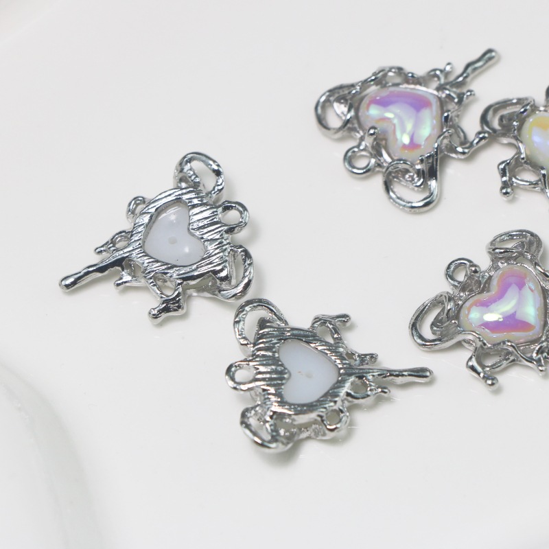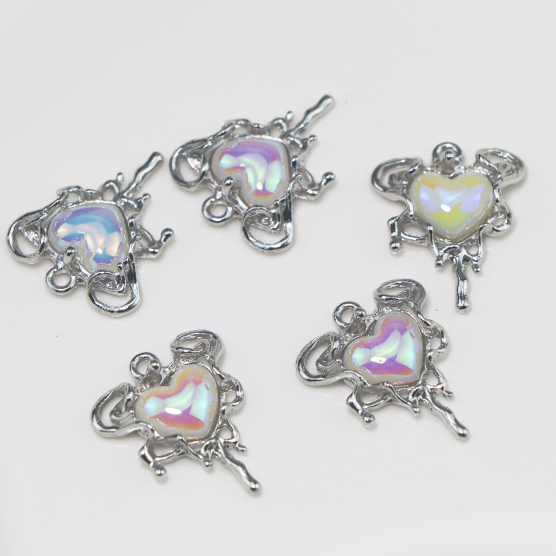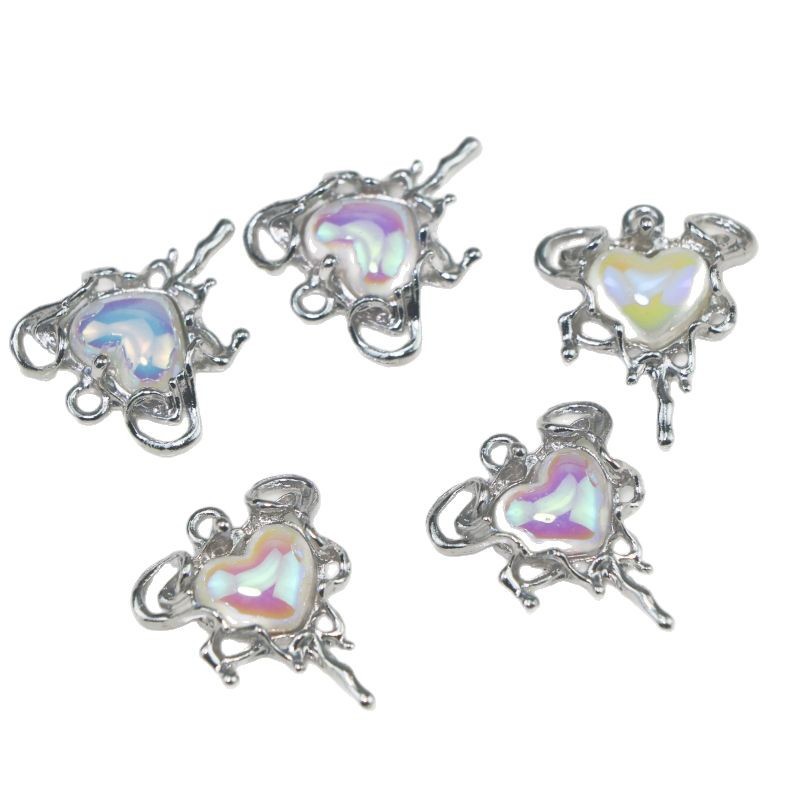Подвеска- сердце из цинкового сплава, цинковый сплав, с Акрил, Сердце, плакирован серебром, DIY, серебряный, 6.5mm, продается PC