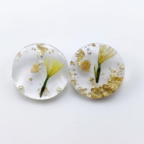 Resin Zinc Alloy Earring, with Resin, Round, plated, fashion