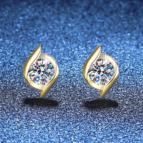 925 Sterling Silver Stud Earring, with Moissanite, platinum